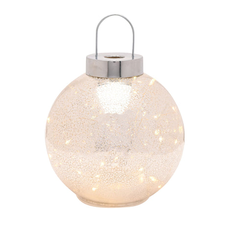 Silver LED Light Up Glass Bauble Decoration 15cm