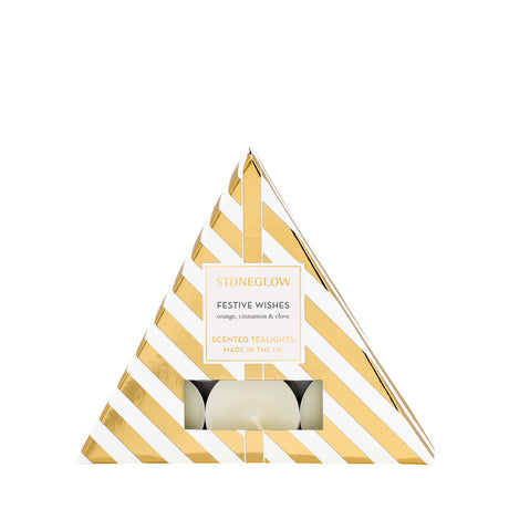 Stoneglow Seasonal - Festive Wishes - Orange, Cinnamon & Clove Scented Tealight (Triangle)
