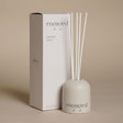 Each diffuser is comprised of a sleek contemporary ceramic holder featuring an elegant caption, and white reeed sticks, designed to complement any interior. Fill with the Peony, Lychee and Rose oil provided to create a calming atmosphere.