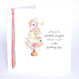 A beautiful range of love, celebration and magic! Featuring a delicate watercolour Daughter & Son-in-Law Wedding illustration in vibrant colours, lovingly embellished with genuine crystals and hand-tied satin ribbons.