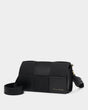 The Taya Crossbody Bag in Black features a woven panel texture that adds a contemporary twist to a timeless silhouette, combining contrasting faux suede and vegan leather. Design details include a large front flap and an internal back zip pocket for valuables. Whether it's for work or weekend, Taya is a standout style for the season.
