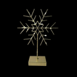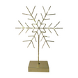 Gold metal snowflake on base with battery operated LED lights.