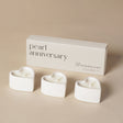 Three white ceramic heart-shaped candles are presented in an elegant slide-out box featuring the text "pearl anniversary - 30 amazing years", creating a meaningful keepsake. With a Peony, Lychee and Rose scent.