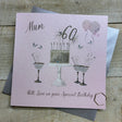White Cotton Mum 60th Pink Champs & Cake Birthday Card